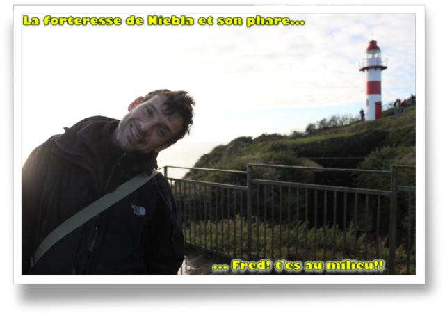 |  Visite des alentours de Valdivia |  | Encore une fois coincé par le vent du Nord, nous partons en visite autours de Valdivia. Nous nous rendons à l'embouchure du Rio Valdivia où ont été construites plusieurs forteresses afin de protéger la ville. Les forteresses de Niebla et Coral se font face afin de croiser les tirs sur les embarcations ennemies, et la forteresse de l'île de Mancera sur le fleuve Valdivia, fait office de verrou. |